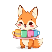 Start your day with a grin thanks to this cheerful fox and its tray of colorful mugs. This mug is perfect for anyone who loves a warm beverage and a smile.